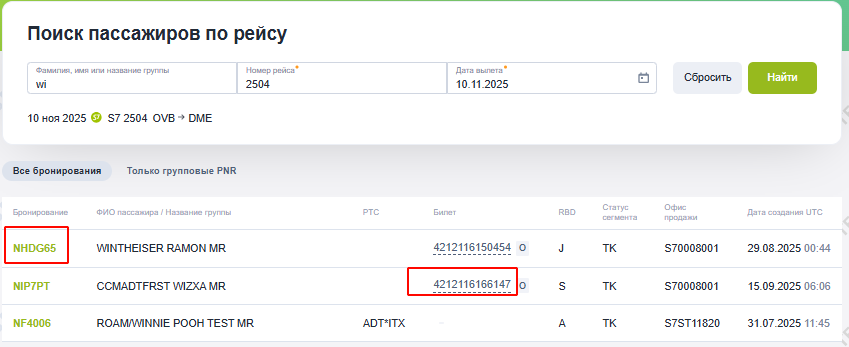 - Офисам Перевозчика доступен полный список бронирований на рейсе.